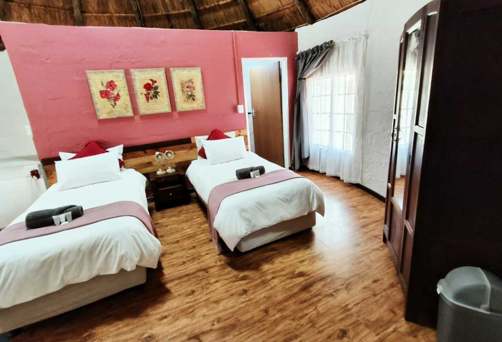 Three Rondavels for two people each, featuring a fully equipped kitchen (kettle, microwave, small fridge), private bathroom, and complimentary tea and coffee. As well as made-up beds and provided towels for your comfort.